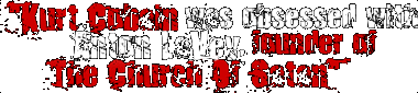 "The Nirvana frontman was obsessed with Anton LaVey, the since deceased founder of The Church Of Satan. The first time Cobain came to San Francisco with his cronies from The Melvins, they repeatedly drove by LaVey's infamous 'Black House' (which, since his death, has been seized from his companion and current Church of Satan head, Blanche Barton), fascinated with the barbed wire that surrenced the mansion: rather than keeping intruders at bay, the fence was designed to keep the house's inhabitans in. Cobain knew that LaVey played cello, and attempted to contact him about playing on 'Nevermind.' LaVey never returned his calls." Those interested in Nirvana will know that the cello part om "Something In The Way" on "Nevermind," the only song featuring that instrument, was not planned. When they decided to put a cello part on, they had to search the city they were recording in to find someone who knew how to play a cello. They found Kirk Canning, who wrote the cello lines and played on the album. The source of the information used by "MOJO," Charles R. Cross, author of the acclaimed Nirvana books "The Making Of Nevermind" and "Heavier Than Heaven," says that the magazine has blown what he told them a little bit out of proportions: "Kurt was fascinated by Lavey and wanted to get him to play on something. He said that several times when he visited San Francisco and went by the Melvins' house, which was just down the street from LaVey's. He had heard that he played cello. Kurt did want him to play on some future recording; he said this before they went into the studio for 'Nevermind.' It's a little far fetched to say he wanted him to play on 'Nevermind,' but it is accurate to say he wanted him on a future recording." Back to main page |