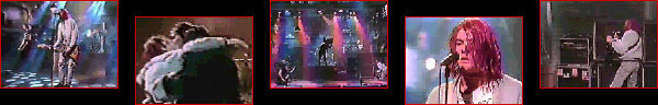 Saturday Night Live 1992 - Nirvana was the first band ever to get the honour of playing the "Saturday Night Live" show twice. The first performance took place on January 11th 1992. "Nevermind" had just struck number one on the Billboard sales chart, kicking Micheal Jackson off the top spot, and Nirvana-mania was raging all over the world. But by this time both Kurt and Courtney were addicted to heroin, which was showcased during the photo-session Nirvana did with Michael Lavin the day before perfoming on "Saturday Night Live," as Kurt nodded out on several occasions. Courtney found out she was pregnant with Frances Bean around this, and claim she stopped using drugs as soon as she found out. The acclaimed "Heavier Than Heaven" book by Charles R. Cross has brought forward information that Kurt overdosed on heoin the night before the first "Saturday Night Live" performance, and that Courtney brought him back to life with an illegal dose of medicine. When it comes to the actual performance, Nirvana did a very punk rock version of "Smells Like Teen Spirit" and then "Territorial Pissings," before trashing the entire stage. Kurt strategically put his guitar neck through twenty-five speakers, but the directors of the show had heard that the band had a tendency of ruining equipment, and had therefore replaced everything with cheaper equipment. Some seconds of the desctrution, including Dave tossing his entire drumkit around the stage, is available on the Geffen Nirvana home video "Live! Tonight! Sold Out!!". Audio versions are available on several bootleg CDs, including "Into The Black Disc III". During the end credits of the show, Nirvana decided to do theirs to 'piss of the rednecks and homophobes,' as they all french kissed. Kurt wore a home-made Flipper shirt he made during the Lavine photo-session the day before. He played a Jaguar and a Stratocaster during the performances. Krist wore a Melvins and L7 t-shirt, which Dave took over for the end credits. THEY PLAYED: "Smells Like Teen Spirit" and "Territorial Pissings." ![]() Saturday Night Live 1992 - While the first "Saturday Night Live" performance was done right after "Nevermind" struck number one, the second performance was part of promoting the newly-released "In Utero" album. One year and seven months after their first performance, on November 25th 1993, they played "Heart-Shaped Box" and "Rape Me." On the rehearsals for the show the day before, the band played did two great versions of "Heart-Shaped Box" and "Rape Me," which sounded a lot better than the actual broadcast. They also did a forty-minute trailer shot with the host of the show, NBA-hero Charles Barkley. Kurt played a Sunburt Univox during this "Saturday Night Live" appearance. Although the broadcast performances are not that special, there are some moments that are definitely worth paying attention to. "Heart-Shaped Box," Krist lifts his bass up and plays on it as if it was a harp. During the first verse of "Rape Me," Kurt stares into the camera as it moves from the left side of the stage to the right, singing 'rape me, rape my my friend,' making it a very powerful moment for anyone who knows what the song is about. During the bridge of the song, Pat Smear, who was then a fourth member of Nirvana, drops down on his knees to play the guitar. This performance is more wide-spread than the first one bootleg-wise, and is even being re-aired on NBC every now and then. Both of these performances are highly suggested for any serious Nirvana fans bootleg collection, as they are both great and classical Nirvana performances. THEY PLAYED: REHEARSALS: "Heart-Shaped Box" (Take I), "Heart-Shaped Box" (Take II) and "Rape Me." PERFORMANCE: "Heart-Shaped Box" and "Rape Me." ![]() Back to main page |