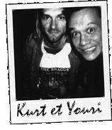 Most famous or semi-famous band from France that have been photographed by Youri Lenquette. He has also worked as a photographer outside of France's border. R.E.M, Nirvana, Crowded House, Midnight Oil, Hanson, The Fleshtones and The Cramps are only a handful of the world-famous bands Lenquette have photographed. A whole generation of people who care about music should have noticed the name Youri Lenquette on a record cover or on a promo picture. But apparently no one has. Youri Lenquette has managed to avoid being written about. Instead, he lets his pictures, his articles, his TV reports and his music videos speak for themselves. No one but himself and his closest friends know who this guy is. It is impossible to find out even how old the guy is without knowing him or knowing someone close to him. But one thing about him is known - he enjoys travelling in his spare time. Before he started taking pictures in 1986, he had already established himself a reputation as a journalist for the French music magazine "Best." Besides taking photographs, he has also worked as a director for music videos, he has done tv reports for the music television program "Rapido," and some years ago he directed a rockumentary about the Senegalese artist Youssou N'Dour. But Youri also enjoys working with other stuff than music. As mentioned, he enjoys travelling. He is planning to release a book with pictures of people he has photographed while travelling in Africa, Asia and South-America. ![]() What Youri Lenquette is most known for, is his pictures of Nirvana. Youri met Nirvana some time in the end of 1991 or the beginning of 1992. By the Australian tour in February 1992, he had become a good friend of Kurt's. Eventually, Youri would become one of Kurt's very few close friends.